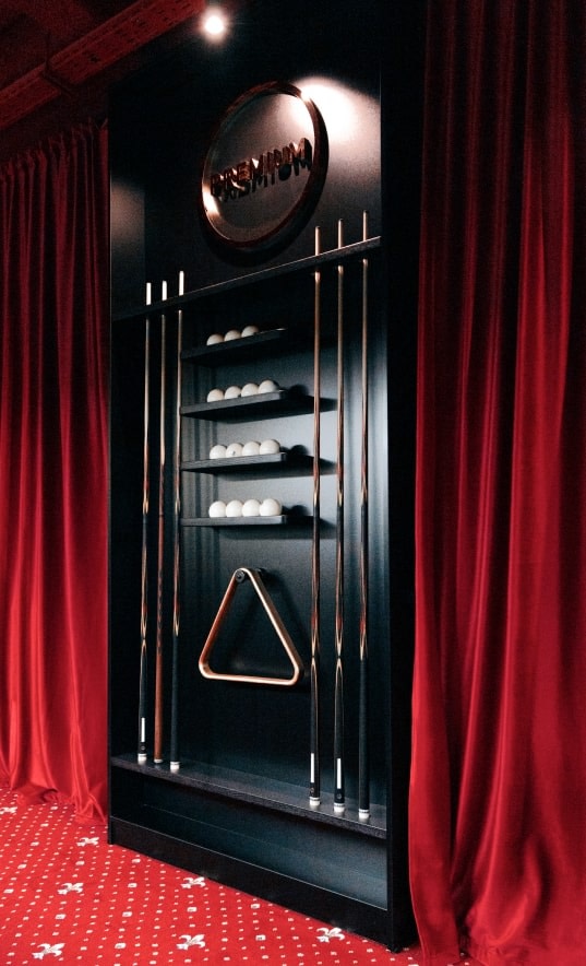 В клубе PREMIUM представлены Кии ручной работы известной по всей Казахстана мастерской «Королевские кии». В Pin-Up этой серии используется сложный напряженный запил под названием цветок.
